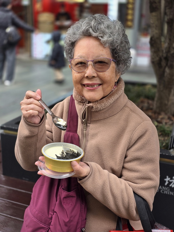 เริ่มได้ของแล้ว ดูเค้าหั่นมันดี เลยลองชิม ซื้อกลับมาชิมต่อ 2 ถุง 50 หยวน