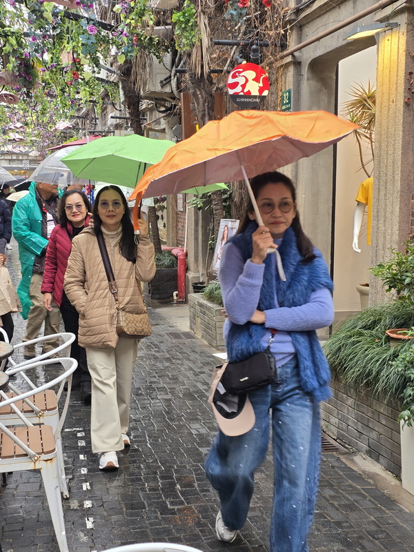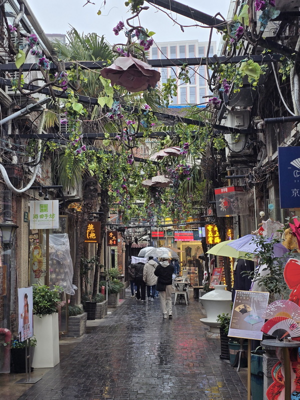 เดินถนน เทียนจื่อฝาง มีฝนเล็กน้อย พอเดินได้